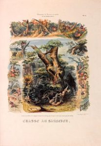 Chasses anciennes d’après les manuscrits des XIV et XVe siècles. Paris, impr. Charles Motte, 1837. In-plano, 52 x 37 cm, titre et 12 pl., demi-veau violine à coins, dos lisse orné de filets dorés (Shaeck). Édition originale. Très belle suite lithographiée d’un titre et de 12 planches.