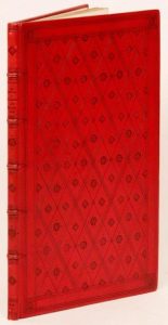 Étude sur la chasse à l’oiseau au Moyen Âge. Une fauconnerie princière et l’éducation des faucons d’après des documents inédits du XIVe siècle et du XVe. Paris, Auguste Aubry, 1873. In-4, 16 x 24,5 cm, 4 ff., 32 pp., 9 pl. repliées, veau cerise, plats ornés d’un double encadrement et d’un treillis fleuri à froid, dos à nerfs orné de motifs à froid, tête dorée, couvertures (Gruel). Édition originale tirée à 100 exemplaires numérotés sur vergé, illustré de 9 planches repliées et de bois dans le texte.
