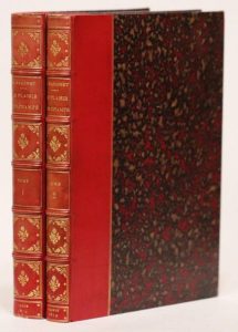 Le plaisir des champs… Paris, Firmin-Didot, 1er mai 1879. 2 volumes in-4, 22,5 x 28,5 cm, 1 f. blanc, 3 ff., LII pp., 2 ff., 348 pp., 2 ff. blancs & 2 ff., 306 pp., 1 f., demi-veau framboise, dos à nerfs ornés de caissons dorés, têtes dorées, non rognés, couvertures (L. Guétant). « Luxueuse édition », la plus complète et la plus exacte, avec une « intéressante introduction et [de] nombreuses et savantes notes d’Ernest Jullien » (Thiébaud).
