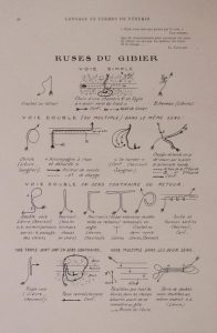 Langage et termes de vénerie. Étude historique, philologique et critique. Paris, Romain, 1906. In-folio, 28 x 35,5 cm, 4 ff., IV + 336 pp., 2 ff., demi-peau de cerf fauve à coins, dos à nerfs orné de filets à froid et de motifs cynégétiques dorés, tête dorée, couvertures et dos (Stroobants). Édition originale.
