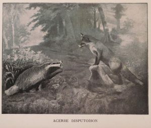 Un déplacement de chasse à courre à Vierzon (saison 1808-1809), ou Acerbe disputoison entre le comte Bédouan de la Tessonnière et M. Le Brenier de la Goupillièrre. Paris, Pairault, 1910. In-12, 12,5 x 18 cm, 180 pp., frontispice et 2 pl., demi-percaline rouge (cartonnage de l’époque). Très rare facétie tirée à 25 exemplaires (n° 10). Avec 2 planches en phototypie.