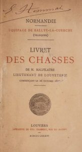 PETIT (Paul)]. Normandie. Équipage de Rallye-la-Guerche (Villequier). Livret des chasses de M. Malfilatre, …