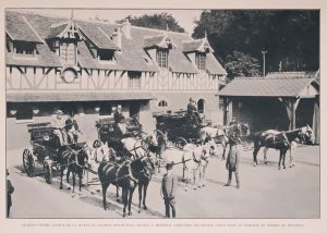 Souvenirs de l'écurie de Vieux-Moulin. Mesnil-sur-l'Estrée, Firmin-Didot, 1906. In-plano, 30,5 x 41,5 cm, 1 f. blanc, XVI + 174 pp., 1 f., frontispice, demi-chagrin brun à coins, dos à nerfs, tête dorée, couverture (reliure de l’époque). Rare unique édition tirée à 220 exemplaires (n° 164) hors-commerce et signés, « destinés aux seuls amis ».