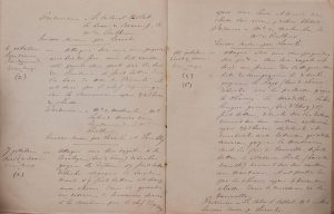 Chasses 1873-1874. [Soran, 1873-1874]. Manuscrit in-8, 17,5 x 23 cm, 15 ff., 1 f. blanc, broché. Cahier manuscrit des chasses du vautrait du marquis de Perthuis principalement en forêt de Soran (Haute-Saône)