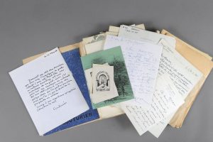 Sont joints divers documents, tapuscrits, brouillons, 4 ex-libris, etc.