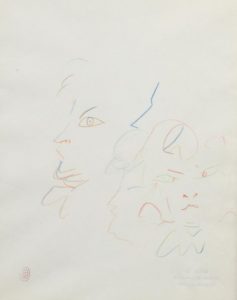 Dessin de Jean Cocteau au crayons de couleurs représentant Colette.