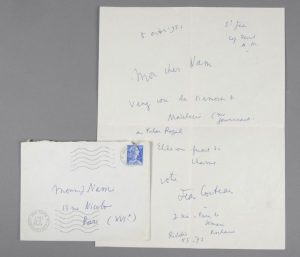 « Venez voir les Siamoises de Madeleine (ma gouvernante) au Palais Royal. Elles vous feront du charme. Votre Jean Cocteau. Je serai à Paris la semaine prochaine. »