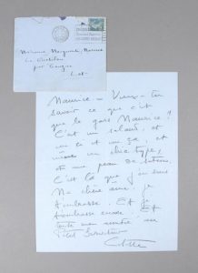 Lettre autographe signée, adressée à Marguerite Moreno. [13 juillet 1925] ; 2 pages in-4°, au crayon, enveloppe timbrée jointe.