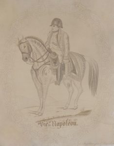 Calligramme autour d'une représentation de l'Empreur à cheval.