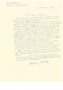 Lettre autographe signée. [Paris] 27 septembre 1972 ; 1 page in-4°.
