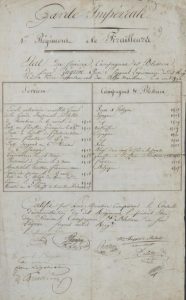 1 page in-folio. En-tête manuscrit « Garde Impériale - 1er régiment de tirailleurs ».