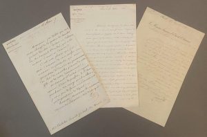 3 documents signés « Guizot ». Lettres à M. Cochelet, pour l'aviser qu'il va recevoir la Légion d'Honneur (1814) ; sa nomination d'agent consul en Égypte (1841) ; sa nomination pour la gestion du consulat à Londres (1847).