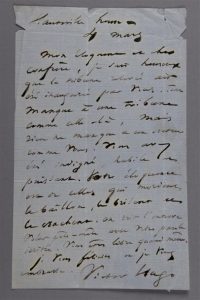 Lettre autographe, signée « Victor Hugo », adressée à Eugène Pelletan. Hauteville House, 4 mars ; 1 page in-8°, avec adresse, petites déchirures.