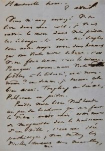 « Vous m'avez envoyé votre livre dans mon exil, je vous envoie le mien dans votre prison. Ces échanges-là sont tous simples dans notre temps entre deux hommes qui ont voulu rester debout. C'est votre faute comme c'est la mienne. Pourquoi avons-nous voulu être fidèle à la liberté, et à nous-mêmes ? En somme, je trouve cela bien ainsi. [...] au Sénat, Pelletan en prison. Puisse mon livre vous rendre un peu du bonheur que m'a fait le vôtre. Avoir mis cette mère de Marguerite dans la naissance d'une ville, c'est une idée pathétique, vous mêlez les vieilles moeurs aux nouvelles, et vous en faites jaillir le drame. Marguerite [...] quelles figures ! L'émotion est profonde et vraie. Quelles pages tour à tour