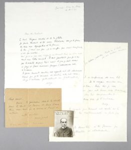 - Quimper, 1922, 1 page in-12 oblongue : « Chers amis, merci, les journaux disent la vérité mais la santé est bonne et sans fièvre. Dans deux mois on se verra à Paris ou ailleurs. Mille amitiés. Max Jacob. »