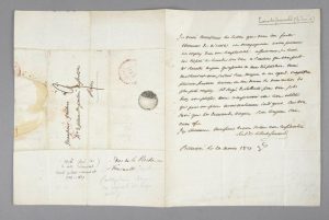 Lettre autographe signée, adressée à M. Gaubert. Beauvais, 20 août 1821 ; 1 page in-8, avec adresse. Cachet de collection JC sous la signature.
