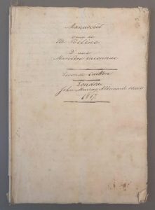 Manuscrit : « Mémoire venu de l'Ile Ste Hélène d'une manière inconnue - seconde édition - London John Murray Albemarle Street 1817 ». [1817]. Cahier de 88 pages in-folio (30,5 x 21,5 cm), cousues, broché.