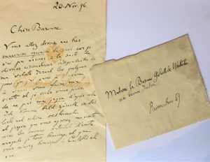 Lettre autographe signée, adressée à la baronne de Winterstein. 20 novembre 1896 ; 2 pages in-8, en français sur papier au filigrane « Eduard Sacher Wien ». « Vous allez devoir une très mauvaise opinion de moi car je n'ai pu arriver à la suite de diverses circonstances indépendantes de ma volonté durant quelques jours que j'ai passés à Vienne à venir vous faire ma visite et je viens vous prier de ne pas me juger d'après cela. J'espère que ce n'est trop vous demander d'indulgence que de réclamer pour moi le privilège d'être considéré comme un vieil ami. Pour ma part j'en sqerai très heureux et vous serez bien gentille comme toujours de m'assurer par un petit mot que vous ne m'en voulez point », etc.
