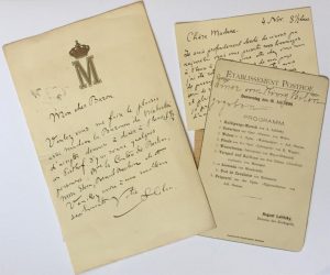 français sur son papier au « M » Couronné. Il regrette de n'avoir déposé ses hommages a la baronne de Winterstein. Il invite le baron de Winterstein et sa femme a venir dîner au Posthof : « J'y ai réuni quelques personnes ».