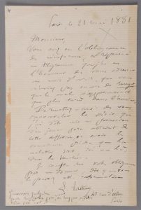 Lettre autographe signée, adressée à Achille Maucuer. Paris, 21 mai 1881 ; 1 page in-8°.