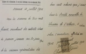 « Reçu la somme de trois cents francs, montant des intérêts échus du premier janvier au 30 juin 1902 de la créance représentative des deux cents actions que j'avais dans la Société nouvelle de librairie et d'édition. »