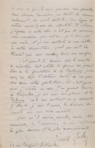 « J'apprends que la Tribune va subir une transformation, et l'on me fait craindre qu'il n'y ait plus de place pour moi dans le journal modifié. J'aurais désiré aller causer avec vous de ma position, mais je crains de vous déranger et je préfère vous dire par écrit combien je compte sur votre sympathie pour me conserver en fidèle collaborateur. [...] Depuis sept mois, je me fais un grand honneur d'écrire à vos côtés, et j'éprouverais un trop vif chagrin si je n'appartenais plus à la Tribune, à laquelle je me suis dévoué de coeur et d'esprit jusqu'à ce jour. S'il devient impossible d'insérer de longues causeries, je pourrai donner des articles plus courts, sur des questions littéraires et sociales touchant à la politique.