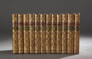 FRIEDEL, A. C. - BONNEVILLE, Nicolas (édité par) - Nouveau Théâtre allemand. Par M. Friedel, professeur en survivance des Pages de la grande Ecurie du Roi. Paris, Veuve Duchesne et d'autres, 1782-1785. 12 vol. in-8, veau fauve granité de l'ép., dos lisse orné.