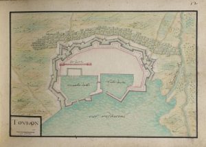 45 planches aquarellées (dimensions 190 x 125 mm) représentant : Calais, Sedan, Rocroy, Mézière, Brest, Longwy, Sarlouisi, Nancy, Lamothe, Maubeuge, Grenoble, Thionville, Mont Royal, Toulon, Dunkerque, Nieuport, Tournay, Bergue, Charleroi, Namur, Ath, Menin, Saint-Martin de Reé, Grave, Montlouis, Nice, Pignerole, Cazal, Villefranche, Phililsbourg, Huningue, Landaw, Brisach, Fort Louis du Rhin, Strasbourg, Phalsbourg, Malte, Belfort, Oudenard, le Havre, Cambray, paysage montagneux, tour de Heidenberg, paysage de plaine, paysage avec des champs. Ex libris ms. : "livre ayant appartenu à Monsieur Le Cloustier gentilhomme militaire, directeur du Génie"