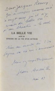 ANOUILH, Jean - La Belle Vie, suivi de Episode de la vie d'un auteur. Paris, La Table Ronde, 1980. Pet. in-8, 177 pp., demi-mar. rouge à coins, dos à nerfs, tête dor., couv. et dos cons.