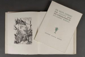 COLETTE - En Pays connu. Avec des lithographies de Luc-Albert Moreau. Paris, Ed. Manuel Bruker, 1949. In-4, 114 pp., en feuilles, couv. ill., chem. étui un peu défr., côté sup. détaché.