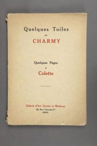 COLETTE - Quelques Toiles de Charmy. Quelques Pages de Colette. Paris, Galerie d'Art Ancien et Moderne, (1924). In-8, (4) ff., 8 pl. h. t., br., dos un peu défr.