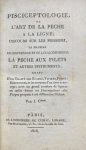 CUSSAC, Jean - Pisciceptologie, ou l'art de la pêche à la ligne. Discours sur les poissons, la manière de les prendre et de les accommoder, la pêche aux filets et autres instruments ; suivi d'un traité des étangs, viviers, fosses, réservoirs, et les moyens d'en tirer avantage. Paris, Imp. de Cussac, 1816. In-12, front., XXIV, 388 pp., 28 pl. h. t. grav. en taille douce, qqs. rouss., demi-veau fauve du XIXe s., dos lisse orné de fil. dor. ou à froid, un peu frotté.