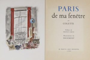 [DIGNIMONT] - COLETTE - Paris de ma fenêtre. Préface de Francis Carco. Illustrations de Dignimont. Paris, Trinckvel, 1961. In-4, 202 pp., nomb. ill., 12 pl. h. t. en coul., br., couv. rempliée, en feuilles, sous chemise, étui éclaté.