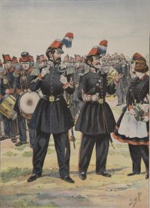 48 planches en couleurs de Job. On a inséré une page de 32 esquisses de Job dessinées à la plume représentant des têtes portant des coiffes militaires, légendées de 1789 à 1880.