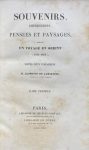 LAMARTINE, A. de - Souvenirs, impressions, pensées et paysages, pendant un voyage en Orient (1832-1833). Paris, Gosselin, 1835. 4 vol. in-8, portrait, tableau dépl., deux cartes dépl., nomb. rouss., demi-veau glacé vert de l'ép., dos à nerfs orné. (Koehler).
