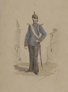 [MANUSCRIT] - Costumes de l'armée allemande pendant la guerre de 1870-71 faits à Nancy. , vers 1871. petit in-4, 25 dessins aquarellés contrecollés de 140x110mm,