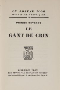 REVERDY, Pierre - Le Gant de crin. Paris, Plon, 1927. In-12,