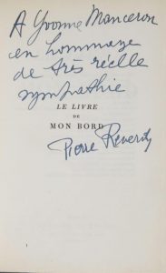 REVERDY, Pierre - Le Livre de mon bord. Notes 1930-1936. Paris, Mercure de France, 1948. In-12, 256 pp., br.