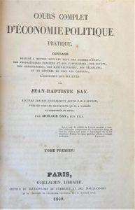 SAY, Jean-Baptiste - Cours complet d'Economie politique pratique (...). Seconde édition entièrement rev. par l'auteur, pub. sur les manuscrits qu'il a laissés et augm. de notes par Horace Say, son fils. Paris, Guillaumin, 1840. 2 vol. in-8, 676, 628 pp., demi-veau fauve de l'ép., dos à nerfs orné de fil. dor., charn. sup. fendues, pet. manque au dos du tome II.
