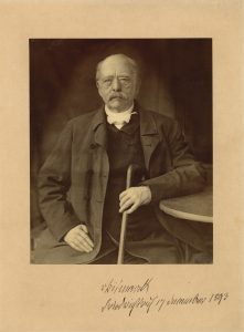 Bismarck a signé et daté de sa main sous la photo, sur le carton, de Friedrichsruh où il s'était retiré après sa démission des fonctions de chancelier en 1890 : «vBismarck Friedrichsruh 17 December 1893».