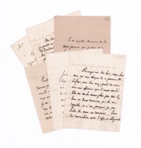 LAMENNAIS Félicité de (1782-1854) prêtre, écrivain et philosophe — 6 L.A.S. «F. Lamennais», «F.L.» ou «Lamennais», 1843- 1846 et s.d. ; 11 pages in-8 ou in-12, 3 adresses.