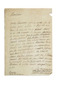 «Outre l'avantage que je reçoy de la grace qu'il a pleu au Roy de me faire, ce m'en est un sy grand d'avoir eu en cette rencontre des marques particulieres de vostre bonté que je ne puis m'empescher de vous professer que persone ne les peut jamais ressentir plus veritablement que moy, je suis bien honteux monsieur de ne pouvoir vous tesmoigner ma recognoissance que par un compliment innutille, j'essaieray avec tout le soin possible de vous en donner dautres preuves»...