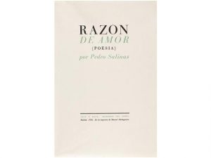 1936. (LITERATURA). SALINAS, PEDRO: RAZON DE AMOR (POESIA). Madrid: Ed. del Arbol, Imp. Manuel Altolaguirre, 1936. 4° menor. 236 p. Rústica edit. Primera edición.
