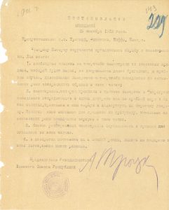 crayon violet, cachet encre du Soviet révolutionnaire militaire de la République (marge gauche effrangée) ; en russe.