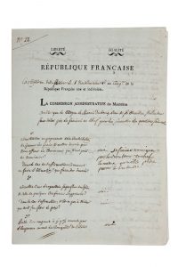 «La Commission administrative du Mantouan arrête que le Citoyen Le Marois Duboscq, l'un de ses membres, se rendra sans délai près du Général en Chef pour lui soumettre les questions suivantes :