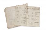♦ Précieux manuscrit de croquis et de calculs accompagnés de notes pour l'Essai sur la fortification de campagne, auquel Napoléon a travaillé à Sainte-Hélène.