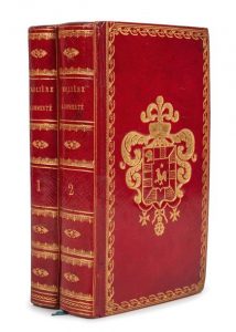 Fraîche reliure en maroquin aux armes de Régnault de Saint-Jean-d’Angely (1762- 1819), comte d’Empire et secrétaire d’État de la famille impériale. Proche de Napoléon, qu’il avait connu à l’armée d’Italie, cet esprit supérieur et adroit remplit de nombreuses missions délicates au profit de l’Empereur. Après avoir présidé la section de l’Intérieur au conseil d’État en 1802, il devint secrétaire d’État de la famille impériale en 1807 et commandant d’une légion de la garde impériale en 1814. Il suivit Marie-Louise à Blois et fut exilé par Louis XVIII pour avoir été ministre d’État durant les Cent-Jours (cf. Anne Lamort, Reliures impériales, Bibliothèque napoléonienne de Gérard Souham, p. 144).