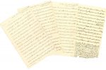 (5/18 janvier 1868)… « Je sens que tout déborde en nous plus que jamais et nous sommes plus amoureux que jamais l’un de l’autre » (31 décembre 1874/12 janvier 1875)… « toute ma vie se passera à t’aimer, car c’est un culte et un attachement qui ne peut pas diminuer » (26 juin/8 juillet 1880)… « Je te félicite encore cher ange adoré pour ce jour où 14 ans nous nous attachâmes l’un à l’autre pour toujours […]. Que Dieu te conserve et nous bénisse le 6 et nous accorde bien des années de bonheur » (30 juin/12 juillet 1880)… Enfin, le 6/18 juillet, « Te voilà mon mari adoré devant Dieu et les hommes, et tu peux être sûr qu’il n’y aura pas de mari tant aimé par sa femme comme toi tu l’es et tu le seras toujours »… On joint également 4 L.A. et 1 L.A.S. d’Alexandre II à la princesse Louise Dolgoruka, belle-sœur de Catherine, 1867-1868 ; 22 portraits photographiques, la plupart d’Alexandre et 2 avec inscriptions autogr. du Tsar au dos ; 6 brouillons autographes de discours d’Alexandre II, 1876-1879 (un en russe) ; environ 25 notes autographes de Katia : étapes de voyages, dates de télégrammes et lettres, mode d’emploi pour ouvrir son coffre-fort, et un fragment autogr. de ses Mémoires (5 p.) ; une L.A.S. du Grand-Duc Alexis (en russe), et une du comte Mikhaïl Loris-Melikoff à la princesse ; une aimable L.A.S. d’ALEXANDRE III à la même, 6 août 1881, lui adressant des dessins de Gogo retrouvés dans les papiers de son feu père (en russe) ; 2 L.A.S. de la princesse à son frère Anatole, ou à Alexandrine Vinogradoff : instructions testamentaires (Nice 1902) ; etc.