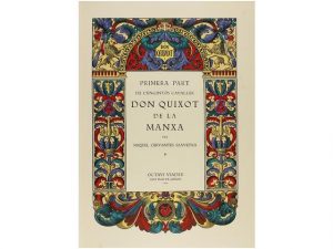 1936. (CERVANTES). CERVANTES SAAVEDRA, MIGUEL DE: DON QUIXOT DE LA MANXA. Sant Feliu de Guixols: Octavi Viader, 1936. 2 vols. en folio menor. I: XIV + 143 f., 1 h.; II: VIII + 190 f., 1 h. Impreso a dos tintas. Preciosas cromolitografias en la...