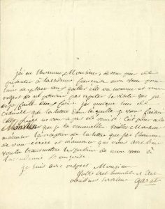 [Vers 1789 ?], à MARMONTEL, présentant sa candidature à l’Académie française. 1792-1793, comme ministre de la Justice puis de l’Intérieur. 16 frimaire, au citoyen JARENTE : « Les meilleurs de tous les titres pour obtenir des places dans une Republique vous les avés, ce sont les lumières et le Patriotisme »… 24 novembre 1812, à un collègue : « Sans doute l’académie si souvent assaillie d’injures alors même qu’elle dort ou se tait, sera outragée avec fureur, elle sera lapidée lorsqu’elle fera une espèce de journal. Mais il faut des martirs, peut-etre, au culte du bon gout »… 11 juin 1818, demandant audience à RAYNOUARD. 1er juillet 1818, à LACRETELLE, donnant son jugement sur des discours. 17 novembre 1825, à RAYNOUARD, lui recommandant chaleureusement un drame d’Auguste Fabre qui va être lu à l’Odéon. Mardi 23, à son neveu MAILLIA-GARAT, à qui il a besoin de parler… Etc. On joint 1 P.S. signée aussi par Pache (1792) ; un décret de l’Assemblée nationale avec sa griffe et vignette (1792) ; une la.s. « Garatl’aîné » de son frère Dominique GARAT ; plus 2 décrets impr. de la Convention nationale.